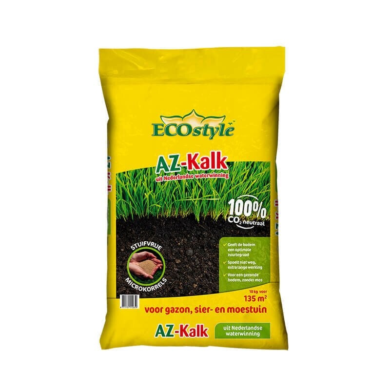 ECOstyle AZ Lime - 20 kg has a long-lasting after-effect. In acid soil, AZ Lime will give an immediate effect; for up to 4 months. In less acidic soil, AZ Lime will remain in the soil as a buffer and gradually adjust the acidity. As a result, AZ Lime responds to the needs of the soil in your garden. ECOstyle AZ-Lime can be applied on the same day with an organic lawn fertiliser.