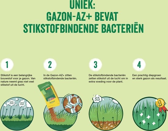 The bacteria and fungi in Gazon-AZ remain in the top layer of the soil and (in optimal conditions) break down organic material such as moss residue and grass clippings in 2 days. So you can leave the clippings after mowing the lawn, so you have less garden waste and it serves as extra nutrition for your lawn at the same time.
